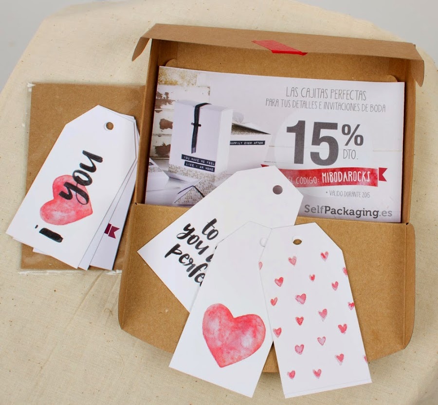 7.- Muestra de una cajita para guardar los detalles de la boda y etiquetas amorosas de la tienda de Selfpackaging.