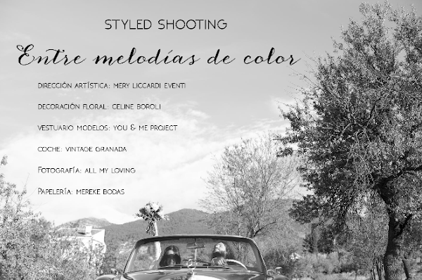 Modelos: Carmen Delgado Sarmiento/Franxu Aranda * Organización y coordinación: Mery Liccardi Eventi * Celine Boroli: Diseño floral * My lovin g: Fotografía * You&Me Project: Maquillaje y estilismo * Mereke: Papelería * Rebecca Sánchez: Peluquería * Vintage Granada: Coche * Vestido 1: You&Me Project * Vestido 2: Mercedes Mercado * Joyería: Colín Dante * Chaqué: Silbón