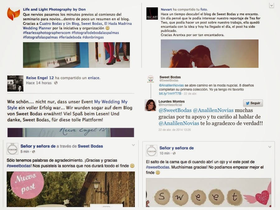 ¿Cuándo y por qué decidí escribir un blog? Todo comenzó cuando me inscribí en un curso para la empresa de marketing donde trabajaba. Como proyecto final, debía desarrollar una campaña para una empresa ficticia, así nació Sweet Bodas y lo que empezó como ejercicio de clase, acabó siendo el principio de un sueñoque todavía dura. Hacer lo que me gusta es el mejor trabajo que he podido tener nunca.