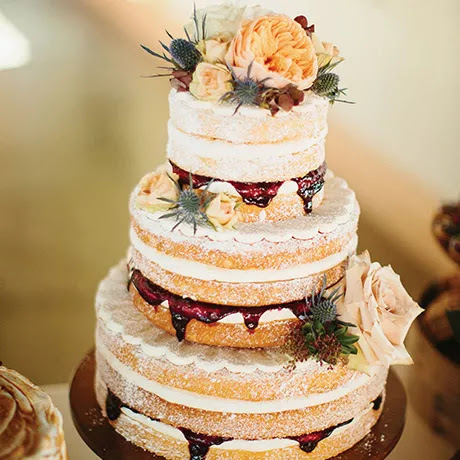 Conocidas como naked cake, son las preferidas, y que dentro de su sencillez, abren un sinfín de posibilidades decorativas con detalles como ramitas, flores, toques naturales, trepadores.
