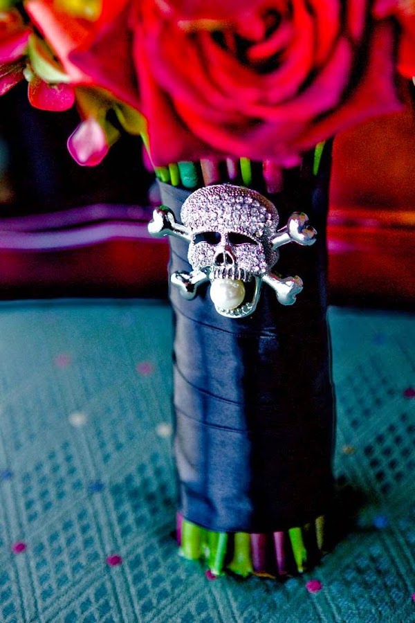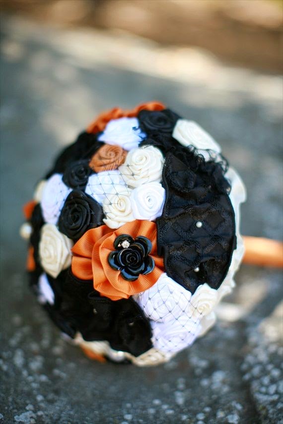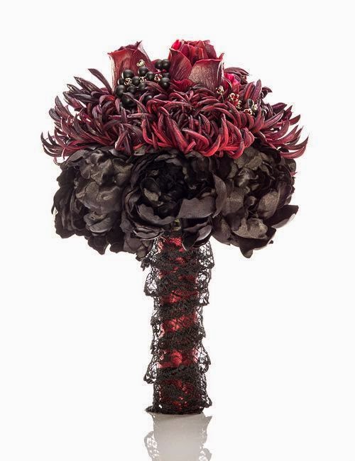Pero también los novios pueden llevar detalles de Halloween como por ejemplo el ramo y los prendidos.