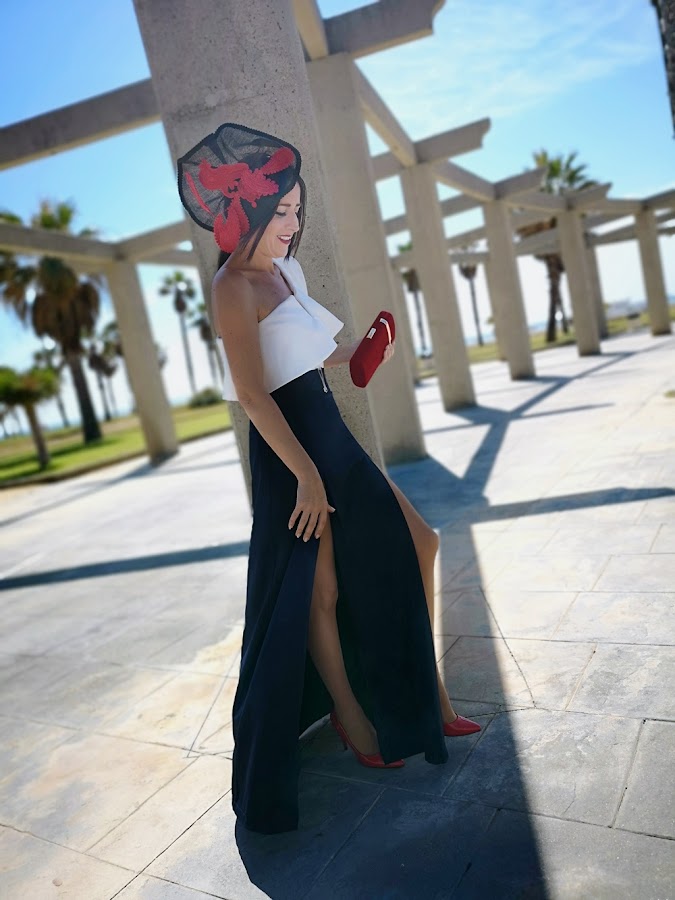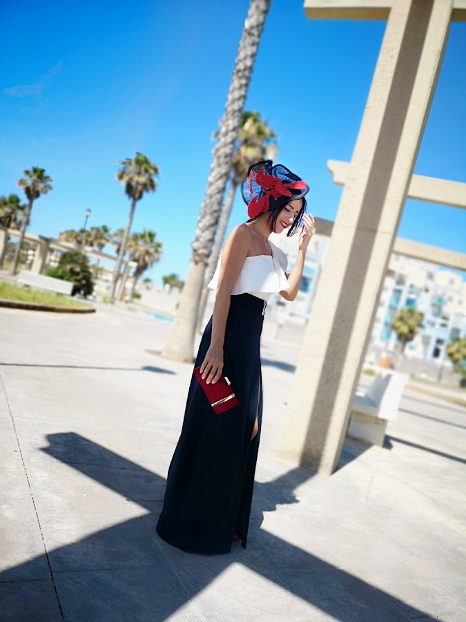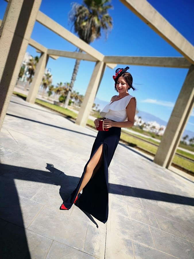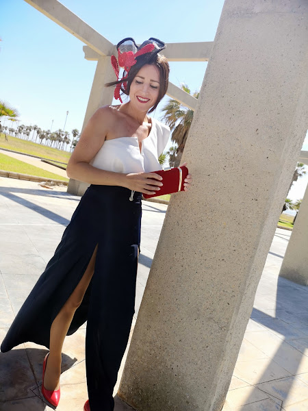 En los complementos es donde he arriesgado con este tocado tan especial y bolso también de JAYEH