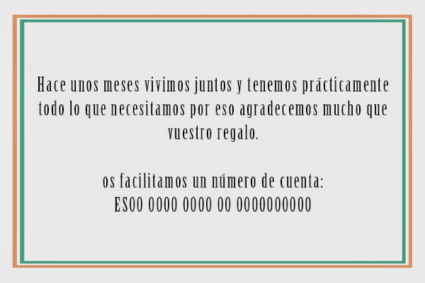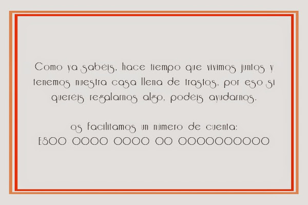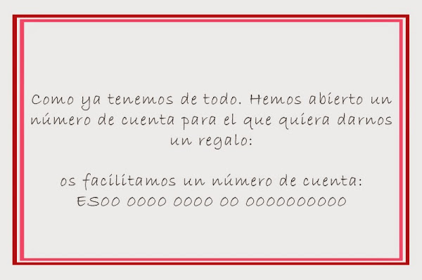 En un anterior post os escribí sobre si se debe o no poner el número de cuenta en la invitación de boda.