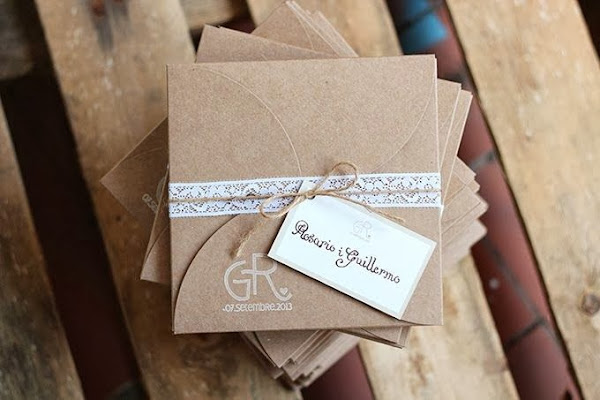 Por el contrario, si vais a realizar una boda de campo, vuestras invitaciones pueden tener una apariencia más rústica o vintage introduciendo complementos como flores secas, cordel, estampados rústicos o puntilla