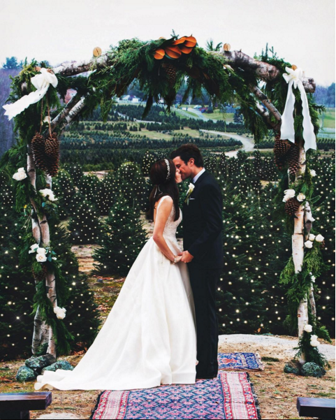 Hace dos años, en la Nochevieja de 2013-14, Kiel le propuso matrimonio a Sarah en el jardín de un hotel castillo de Irlanda bajo los fuegos artificiales. Sí, va en serio. Y, ayer día 5 de diciembre, al fin se casaron. Solo han publicado una imagen, pero ya se puede ver que la boda ha sido fabulosa. Una boda navideña en una granja de abetos de Navidad. Y el vestido de ella.... Es el material del que están hechos los sueños.