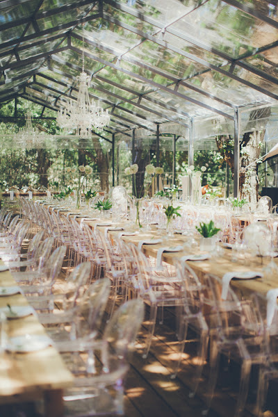 Pudimos ver algo de ésta tendencia en las bodas de estilo tropical, con meseros en acrílico, número de mesa…pero éste año veremos muchos detalles transparentes tanto en la decoración y papelería como en carpas de vidrio ultra maravillosas, en sillas ideales, jarrones etc..