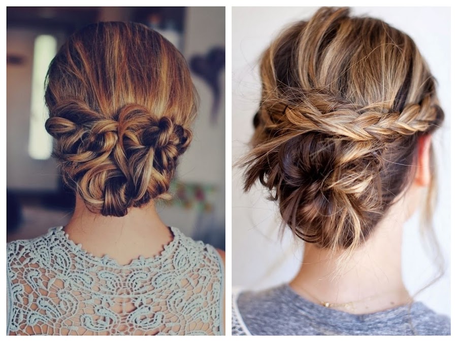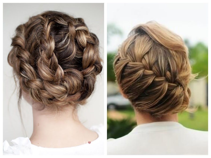 Recogidos trenzados: perfectos para rostros redondos. Dejando la nuca al descubierto, tus pómulos se verán más delgados, tu cuello parecerá más largo y tus ojos más grandes. ¿Mis favoritos? combinados con flores naturales.