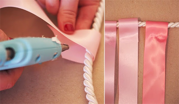 A continuación cuando ya estén todas recortadas, cogeremos la parte superior de la cinta y envolveremos el cordón con ese trozo de cinta que fijaremos con la pistola de silicona.