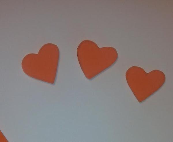 Calcas el dibujo en la goma eva y haces el dibujo tres veces. A continuación lo recortas. Comprueba que tienen la misma forma los tres, poniendo uno encima del otro.