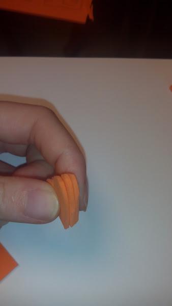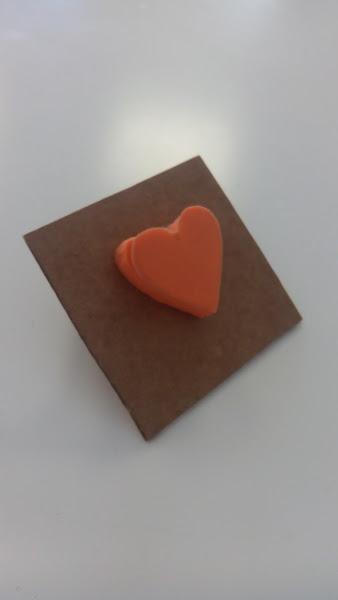 Despúes con la pistola de silicona, pegas uno encima del otro hasta estar los tres en una torre. Un consejo, coloca el que creas que está mejor arriba del todo. Después pegas los tres (que ya están juntos) en un trozcito de cartón con la pistola. Yo pegué por detrás otro trozo de cartón doblado para poder coger de forma más fácil el sello, como puedes ver en la foto.