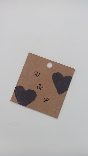 En esta otra he impreso las iniciales y con un sello he estampado un corazón decorativo (si quieres saber cómo he hecho el sello aquí tienes el tutorial)