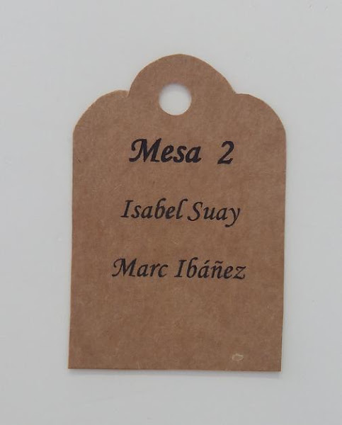 También podemos usar la cartulina para el seating plan. Queda muy bonito para colgar de forma individual o por parejas las tarjetitas con los nombres de los invitados y su mesa, como podéis ver en la foto.