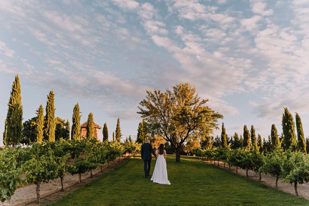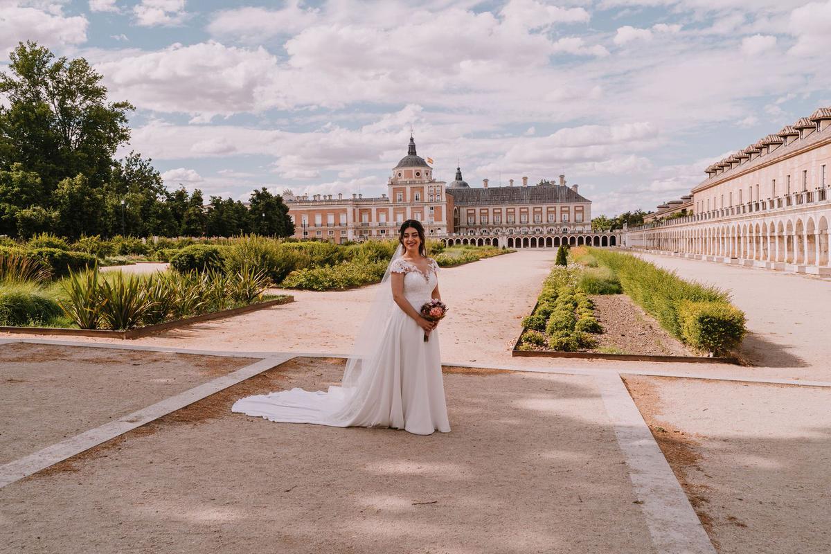 La majestuosidad del cielo de Aranjuez sirve como telón de fondo de ensueño para las promesas que se hicieron la pareja.
