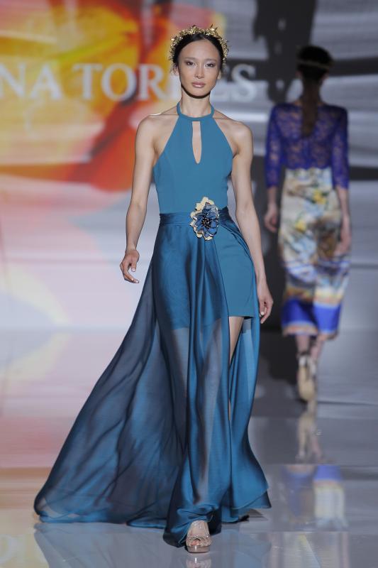 Con ella compartió pasarela Ana Torres. Vestidos de fiesta llenos de glamour y con colores vibrantes, que estilizaban la figura y inspiraban a la primavera.