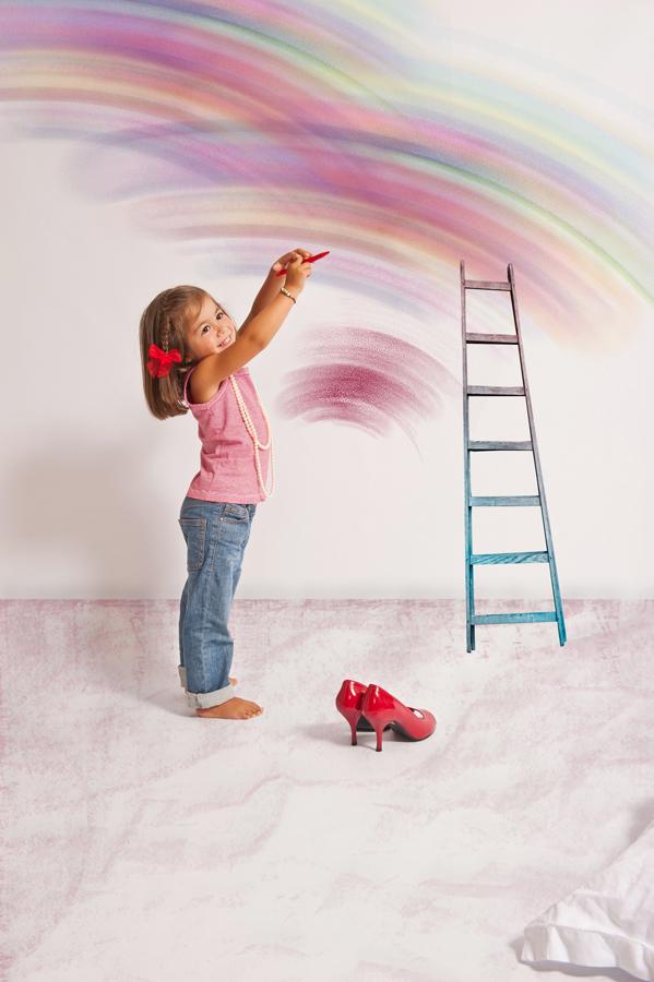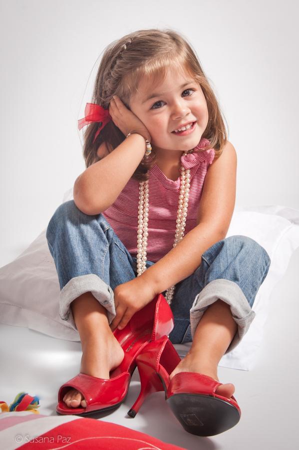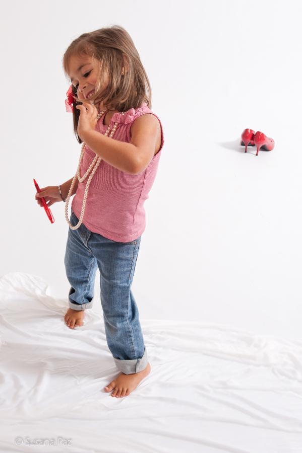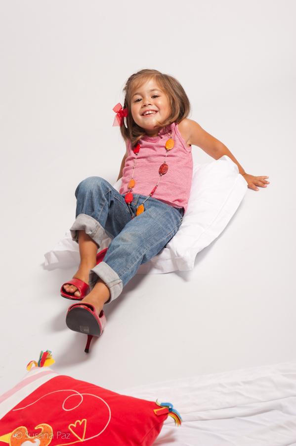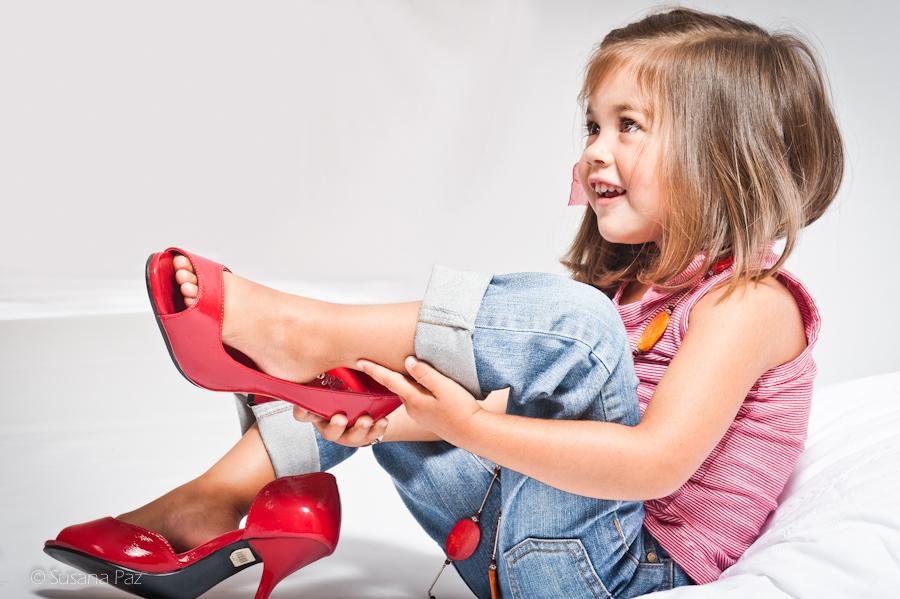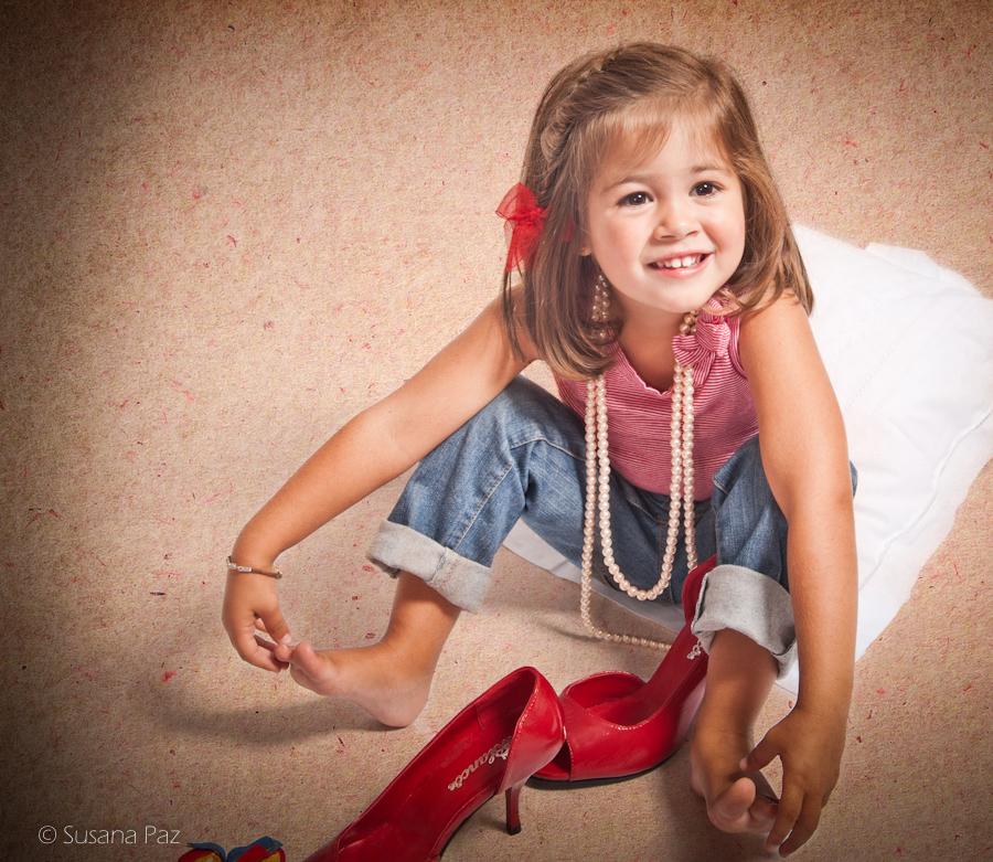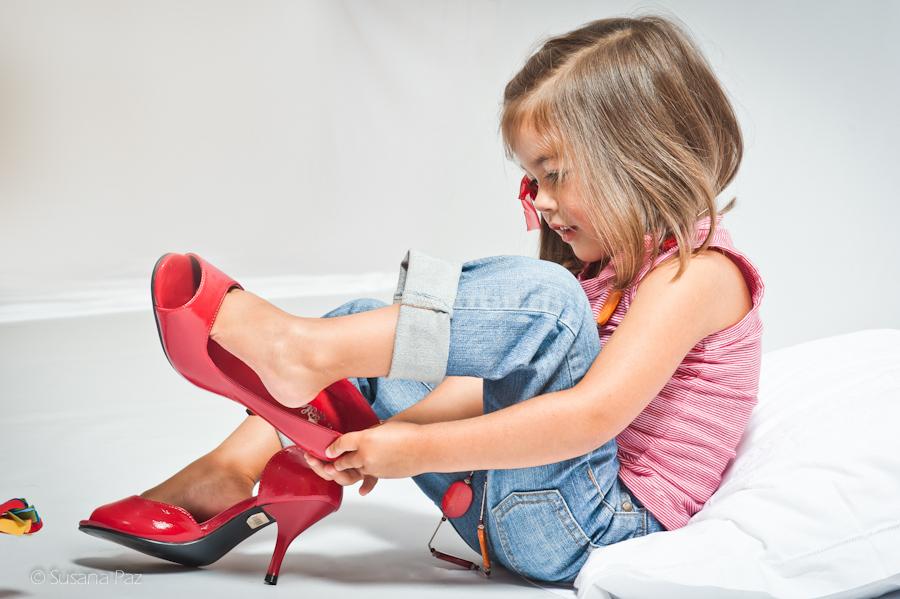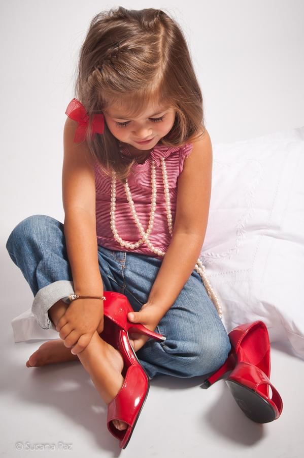 Un hada visitó nuestro estudio… un hada muy joven, enfundada en un vaquero azul y unos tacones rojos enormes, un collar de perlas y la enigmática mirada de quién jamás perderá la ilusión y la fe…. Aunque pasen siglos y carretones de sucesos y caigan los reinos o cambien las tradiciones… ella siempre va a seguir allí, jugando con sus zapatos y cabalgando a hombros de su príncipe azul.