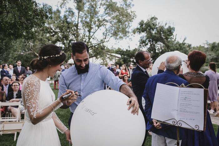 La boda estuvo plagada de detalles muchos de ellos diseñados por los propios novios. Lanzaron globos gigante con mensajes después de la ceremonia al aire libre y hubo muchísma diversión en el photocall, como podréis ver en las fotofrafías de Beatriz Tudanca.