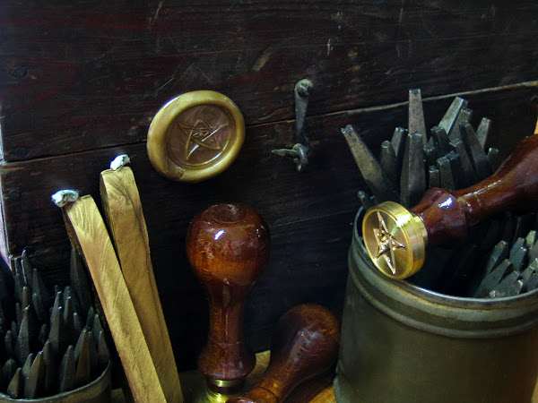 Al parecer, nuestro cliente estaba interesado en poder lacrar una caja de madera de unas dimensiones concretas con varios sellos de lacre que portaran dicho símbolo; éste se trata de un pentáculo, o como indican algunas obras especializadas en magia, el tetragramaton, o el símbolo arcano de los antiguos.