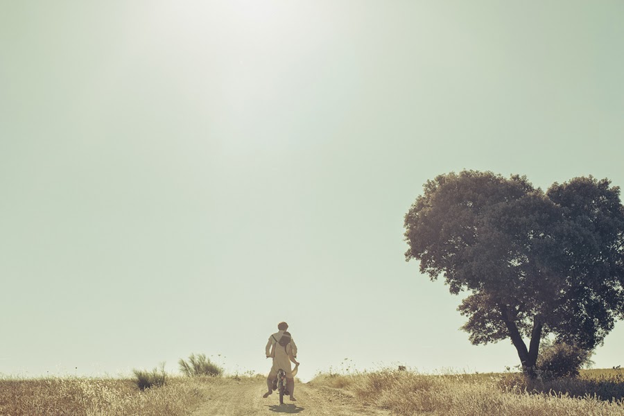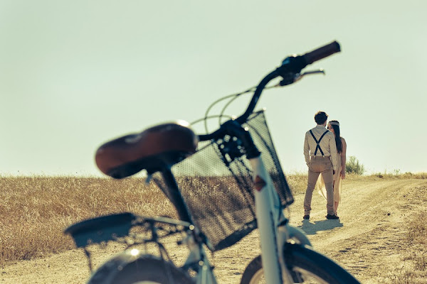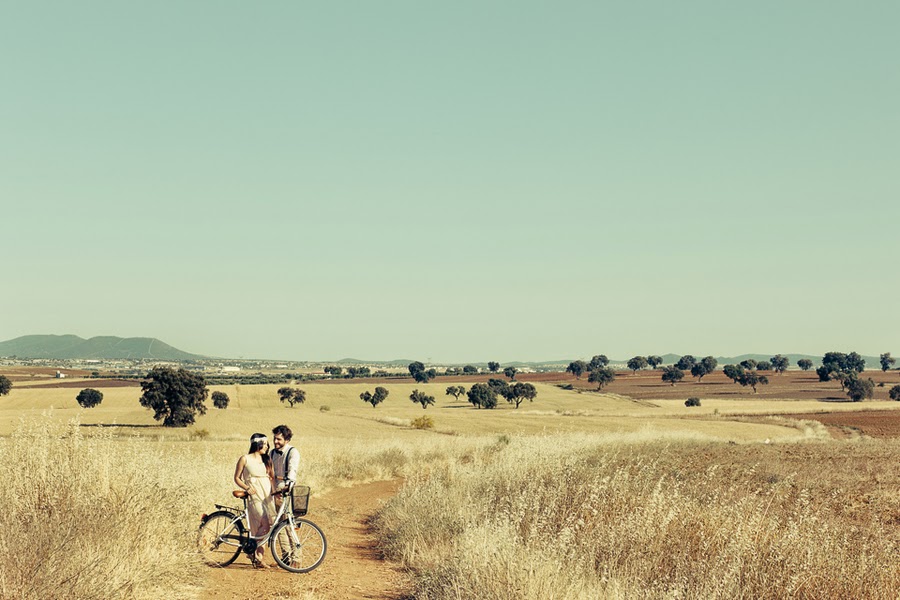 Este me ha encantado, es muy sencillo pero chulísimo ¿Qué necesitáis? Pues una bicicleta vintage (de las que teníamos cuando éramos pequeños, con su cestito incluido), un paisaje similar al de las fotos, y unos novios vestidos de forma bonita.