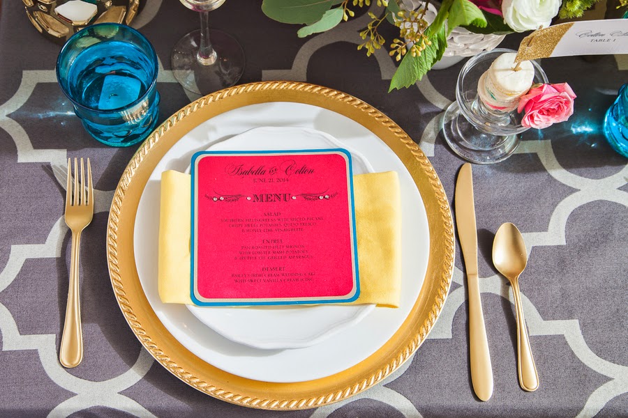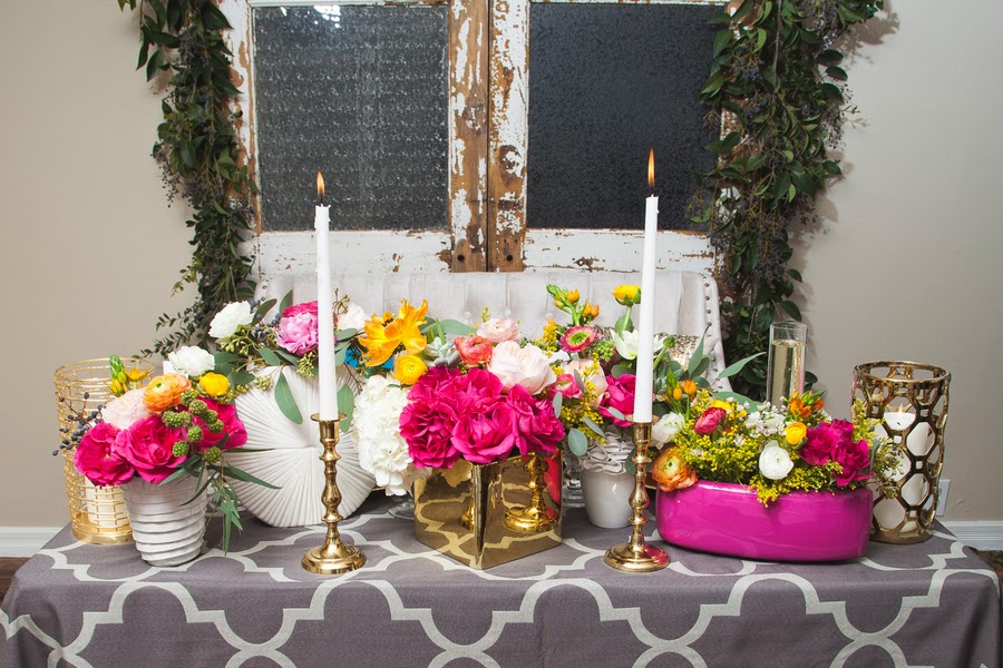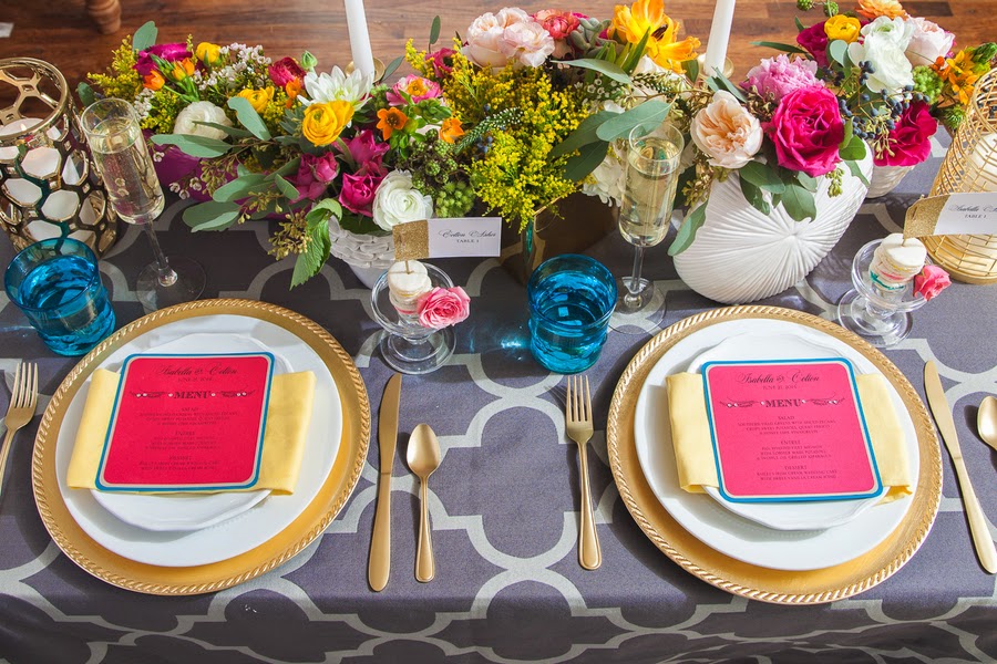 Seguro que con ésta inspiración de boda sacáis ideas para la vuestra veraniega. Los colores intensos y el dorado son protagonistas.