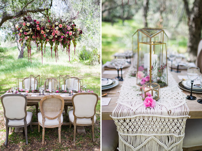 Tiras de encaje de ganchillo y telas de macramé decoran los diferentes espacios de esta ceremonia.
