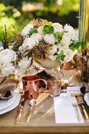 El otoño es una estación perfecta para celebrar la boda de vuestros sueños y si lo hacéis en el exterior mejor, siempre que la temperatura lo permita claro, puesto que los colores otoñales son cálidos y super elegantes. La boda de otoño de hoy es sencilla y a la vez sofisticada Una boda de otoño es sencilla por la informalidad de la mesa, que solo se ha vestido con un camino de mesa y por las sillas rústicas de madera. Sofisticada por los elegantes centros florales en colores pastel y la exquisita cubertería dorada. Una boda de otoño de lo más chic ¿no creéis?.