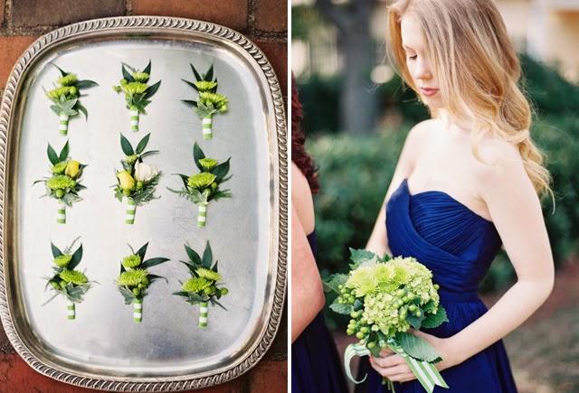 Los boutonieres de los hombres y los ramos de las damas eran sencillos y elegantes elaborados en verde con toques amarillos y diferentes entre si.