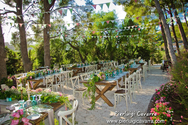 Una auténtica boda heartmade la de Bea y Musti, hecha con el corazón, con recuerdos de la casa familiar donde se casaron, un lugar mágico en medio de un bosque, con las ardillas corriendo por los árboles, mesas imperiales repletas de flores, un vestido bordado, y un atardecer de los que quitan el hipo; luego vino la cena bajo las estrellas, las risas, los bailes y las palabras más que emotivas que Musti dedicó a Bea, un auténtico cuento de hadas.