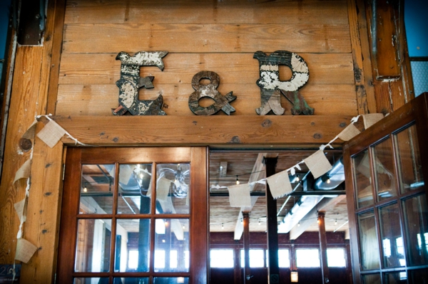 Por último, un detalle de la entrada al salón con las iniciales de los novios.