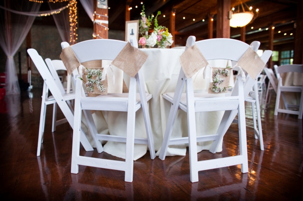 Las sillas estaban decoradas muy sencillas en forma de guirnalda con tela de saco. Queda sencillo y muy bonito para mi gusto.