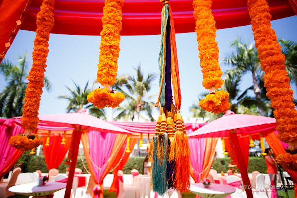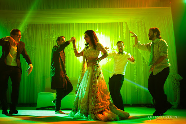 Colores predominantes como el rojo, naranja, rosas, aportan fuerza y energía con el contrastes de colores de las fotos. Una combinación de tradiciones, religión, culturas en esta boda internacional.
