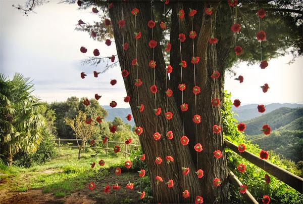Como telón de fondo de la ceremonia se confeccionó una cortina con más de 100 claveles rojos que nos tiene totalmente in love :)