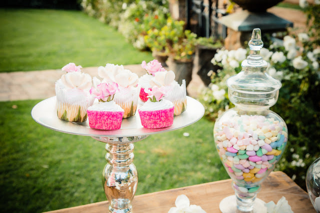 Esta candybar es ideal para una boda estilo shabby chic, donde los tonos pastel y concretamente el rosa es el color estrella.