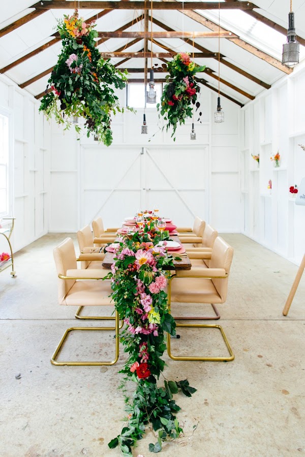 La deco de las mesas también es importante, una guirnalda de flores como nos muestran en la imagen es el complemento perfecto, pero si tenéis muchos invitados y optáis por mesas redondas, al menos podéis vestir la mesa nupcial con algo similar.