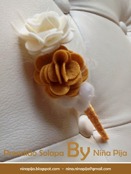 En la boda de Alicia y para que fuese a juego con su RAMO de GERBERAS, también nos acordamos del NOVIO y los padrinos. Así que les hicimos estos BROCHES para la SOLAPA, Y por supuesto a juego con el RAMO DE FIELTRO de la novia. Por que como siempre digo ellos también tienen que ir guapos el día de la BODA.
