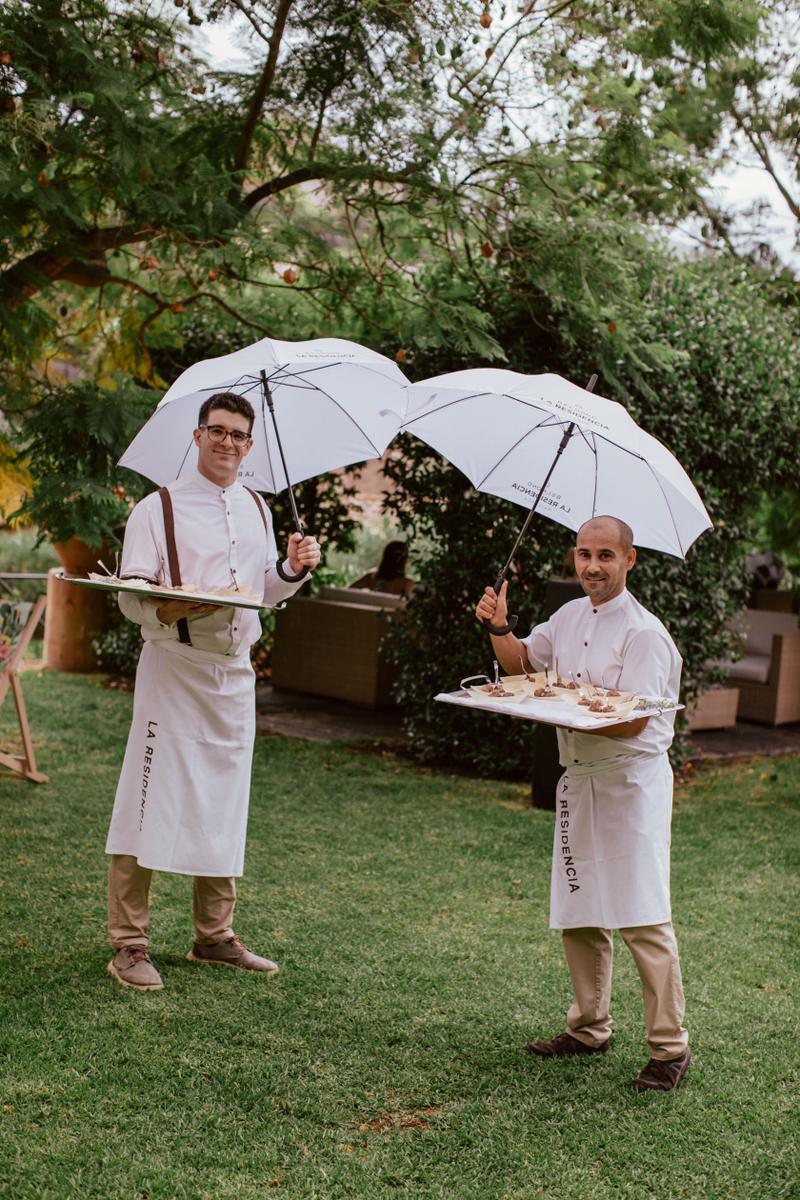 Los jardines de La Residencia fueron el lugar perfecto para la recepción de todos los invitados que provenían de Reino Unido, Estados Unidos y también de Emiratos árabes; y celebrar un divertido cocktail de bienvenida.