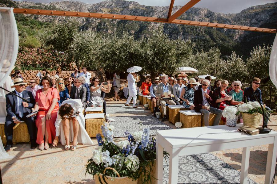 Hay algo mágico en el pueblo de Deià que enamora a todos sus visitantes. No solo porque es un pintoresco pueblo con muchísimo encanto, sino porque tiene un ambiente especial. Tal vez sea por su situación a caballo entre el mar Mediterráneo y la montaña o incluso porque Deià ha sido durante mucho tiempo un imán para famosos artistas, escritores y otros creadores, entre los cuales destaca el escritor Robert Graves. Sea como fuere Deià es un lugar mágico allá por donde lo mires y te atrapa con su atmósfera, naturaleza y calma. Y como Dan y Rod han sucumbido a los encantos de este lugar, su boda debía celebrarse aquí, no podía ser de otro modo.