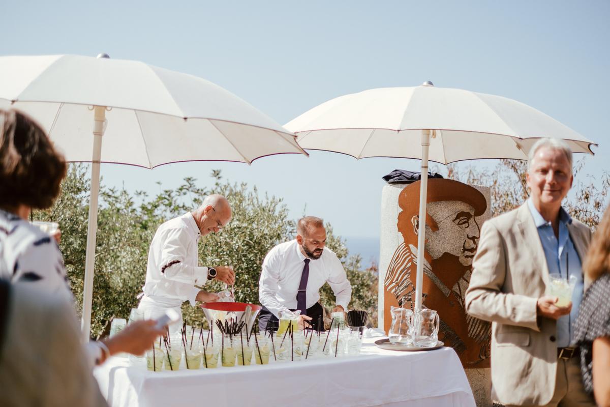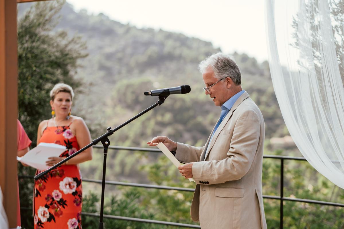 Para celebrar la ceremonia Dan y Rod sucumbieron a la belleza del mirador de La Residencia, ubicado en una escarpada ladera, al pie de la montaña del Teix, y con vistas sobre el Mediterráneo.Desde aquí se pueden disfrutar de las mejores vistas panorámicas de Deià. Sus pintorescas casas de piedra, el verde de los arboles, y los acantilados. Pero lo que realmente hace especial este mirador es su situación en lo más alto del pueblo, con increíbles vistas al Mar Mediterráneo.
