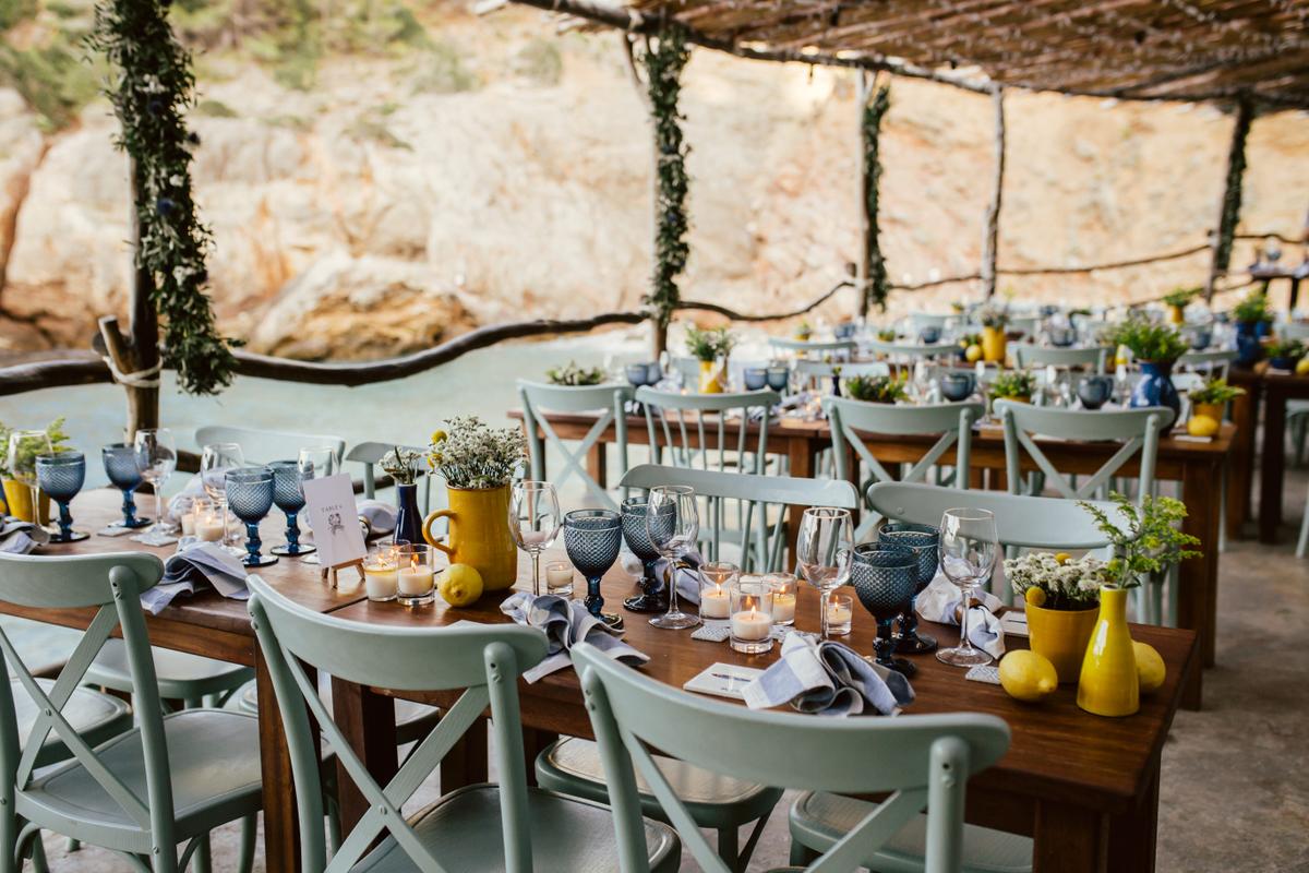 El azul, blanco y amarillo fueron los colores dominantes de la boda y consiguieron aportar ese toque marinero y mediterráneo.
