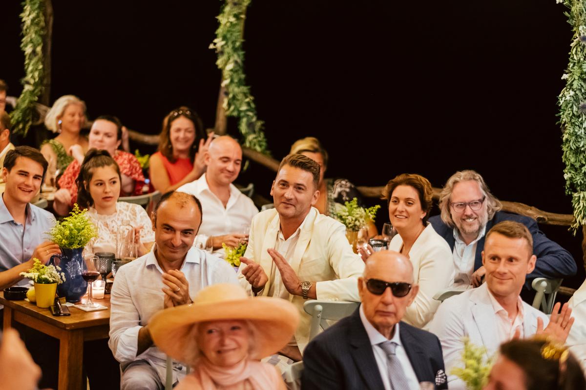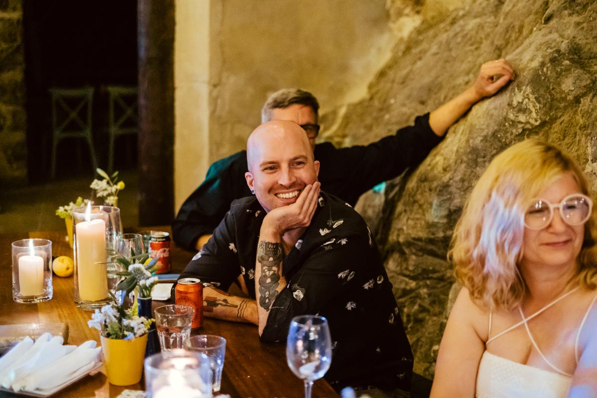 La ceremonia estuvo repleta de emoción, con lecturas, canciones con ukelele, y discursos con anécdotas de la mano de grandes amigos de la pareja, quienes con un toque de humor hicieron algo muy cercano y ameno.