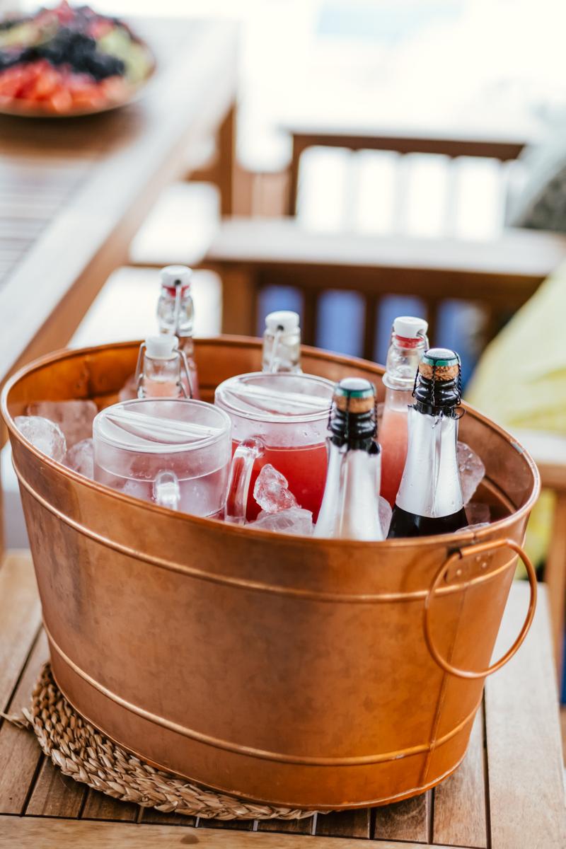 Al finalizar la ceremonia Dan y Rod ofrecieron un aperitivo en el mismo mirador. Todos los elementos decorativos se trabajaron para seguir el carácter de la boda y en armonía con los elementos naturales.