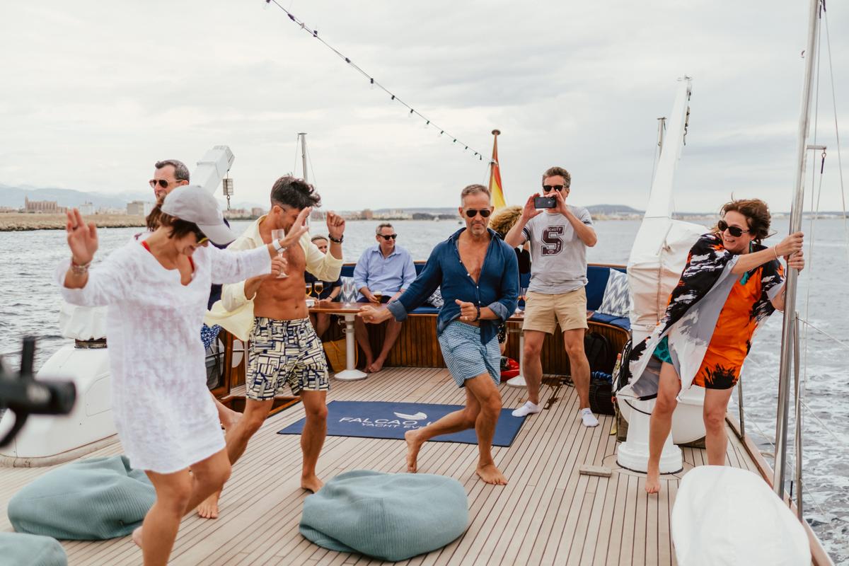Tras la gran noche en la cala Deià Dan y Rod ofrecieron a sus invitados un día de Mar. Embarcaron a todos sus invitados en el Falcao Uno, donde comieron y bailaron sin parar.Al terminar su jornada náutica y de regreso a Deià continuaron la fiesta en Sa Fonda, lugar de magia y diversión.