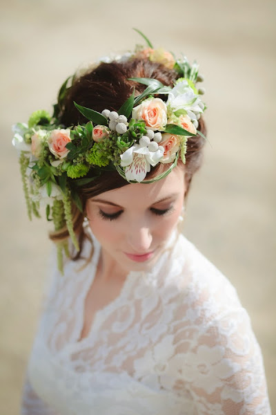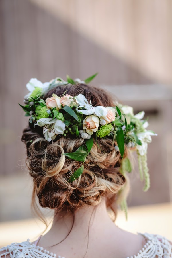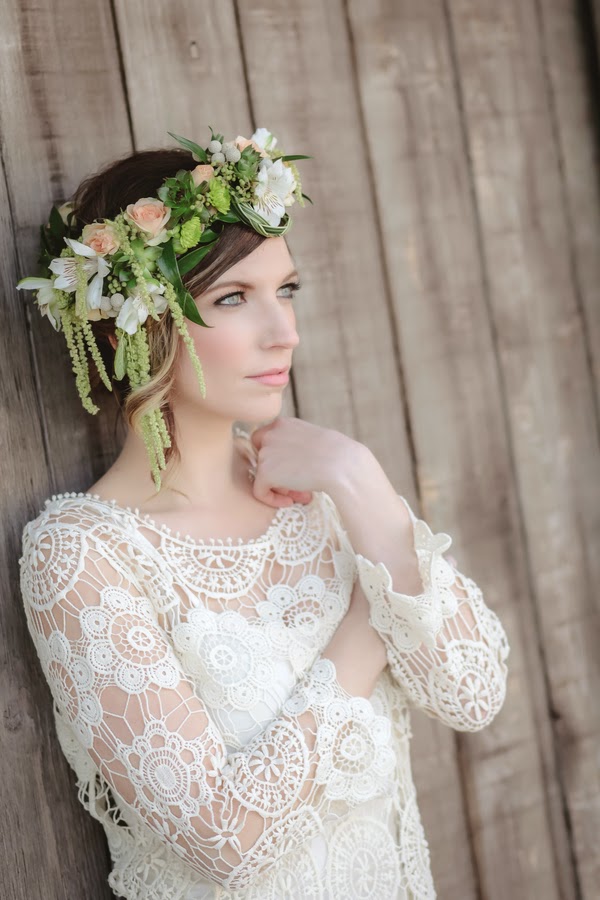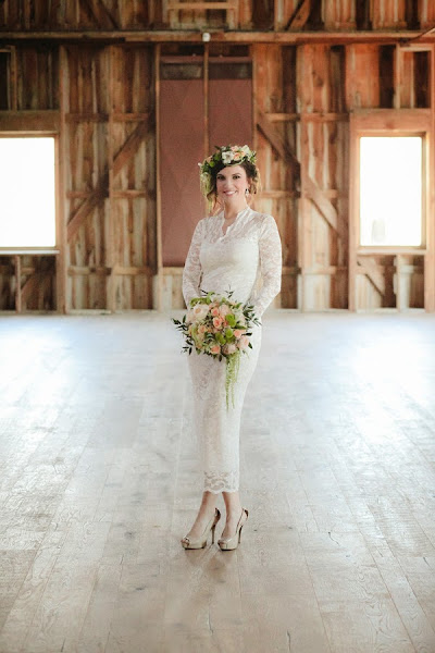 De todas las novias y reportajes que he compartido hasta ahora, puedo afirmar que ésta es la novia más diferente y chic que he encontrado. Un vestido estilo lápiz totalmente ceñido y unos peep toes nude para una mujer moderna con un recogido desenfadado y una corona de flores naturales a juego con el ramo.