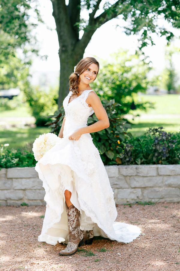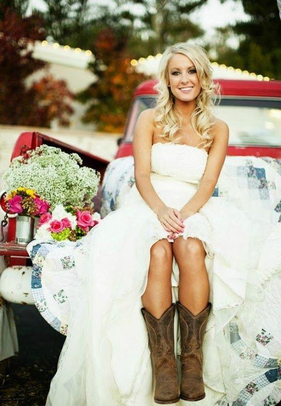 Yo quería ser una novia en botas, pero al ser la postboda en verano, no me las puse, pero a mi me encanta una novia en botas, con una tejana o camisa de leñador. Una novia en botas es súper sexy, muy country y también da mucho juego en las fotos, os he seleccionado mis favoritas encontradas en Pinterest.