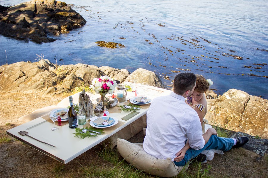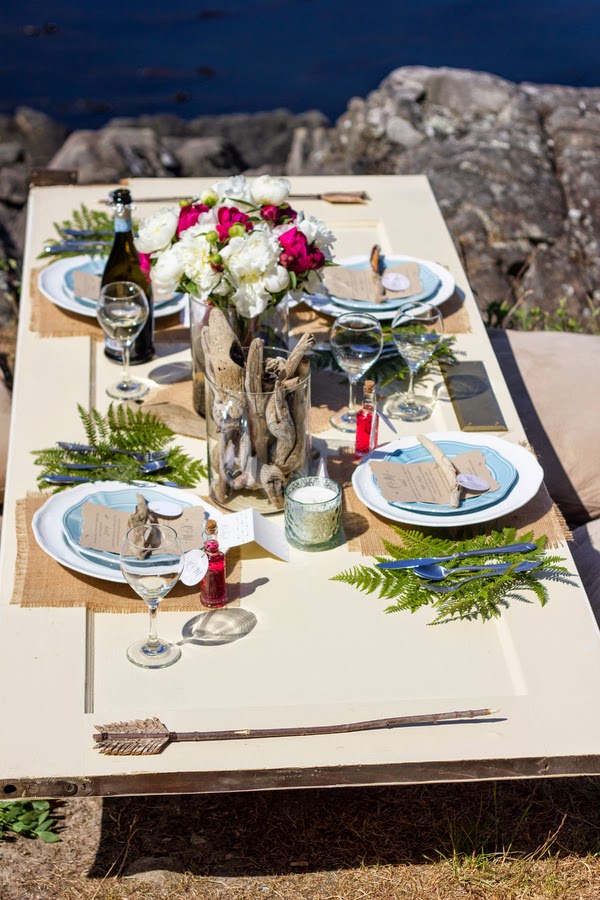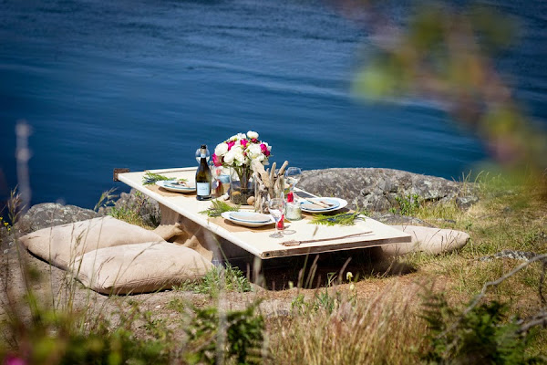 Este es espectacular, se trata de una comida romántica en la playa o lago (lo que tengáis más cerca), una mesa totalmente preparada y decorada con flores, velas, y ramas de helecho. Sencillamente espectacular.