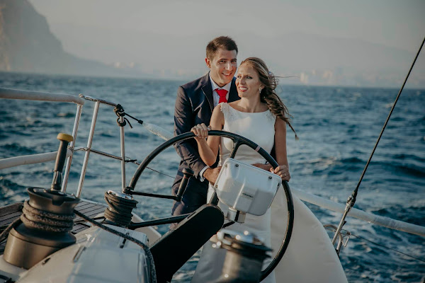 Era el mes de Octubre, Elsa y Ángel ya estaban relajados y zarpamos en un velero precioso y nos fuimos casi casi de crucero por la bahía de Calpe, con un precioso atardecer que Joan Gavilà supo captar a la perfección, el amor se respiraba allí dónde mirábamos, todo era mágico aquélla tarde!