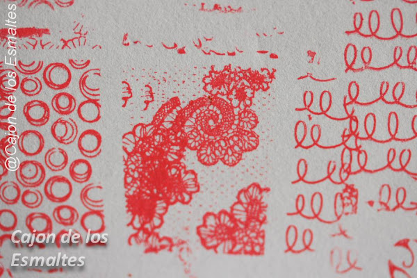 Les muestro en papel como funciona la placa, como les comentaba los diseños con detalles o líneas muy finas se pierden, en el caso del dibujo con encaje el motivo principal que usé en las uñas transfiere perfecto pero as líneas finas que se ven en la placa en el papel apenas quedan como puntitos y en la uña directamente no llegan. Los otros diseños por el contrario funcionan bárbaro así que es un tema de cuales son sus favoritos a la hora de comprar la placa.