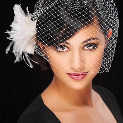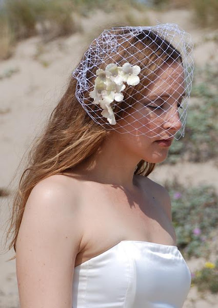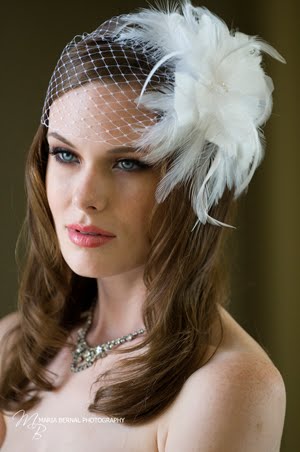Los velos jaula, o birdcage pueden llevarse sólos, sujetos al pelo con horquillas o con broches, flores, tiaras, o lo que más te guste.