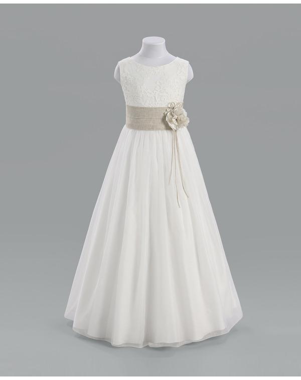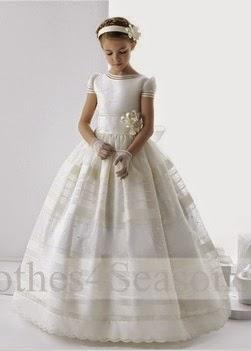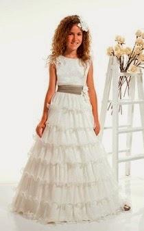 Cuando mi hija hizo la Primera Comunión, yo no me podía permitir comprarle un vestido de comunión, así que llevó un vestido precioso en color "blanco roto", con unas lazadas a los lados haciendo un zigzag, en tono rosa. Lo encontré en la sección de vestidos de fiesta para niñas de El Corte Inglés, (no parecía para nada que no era de comunión) y sabéis que? que tan sólo me costó 150???, cuando el resto de vestidos de comunión rondaban los 600???.