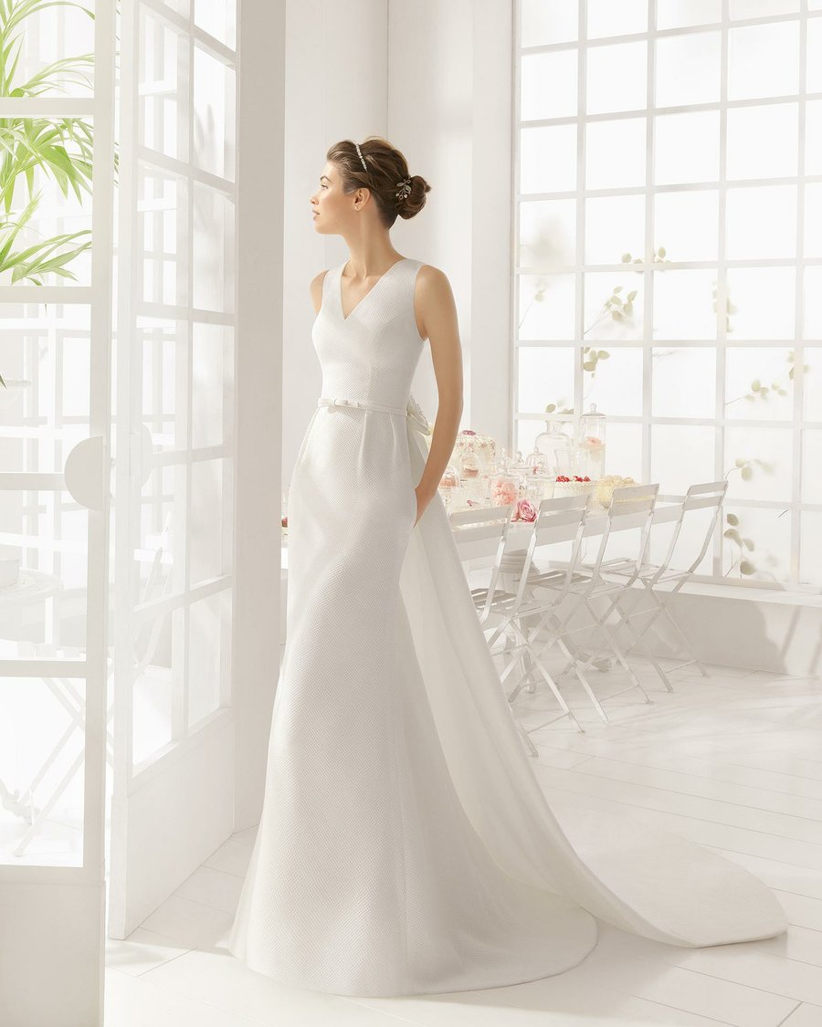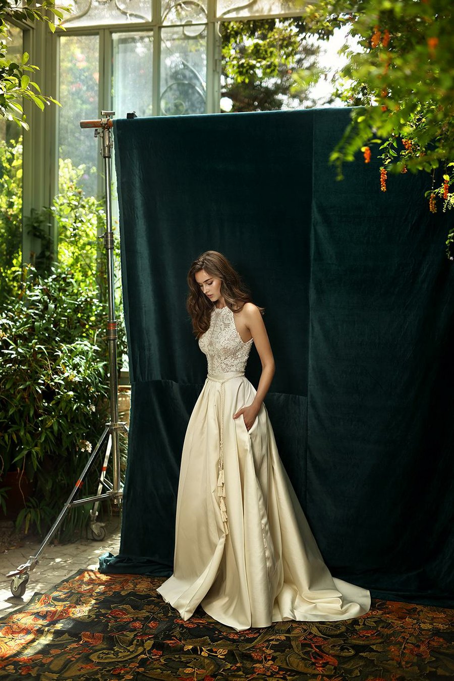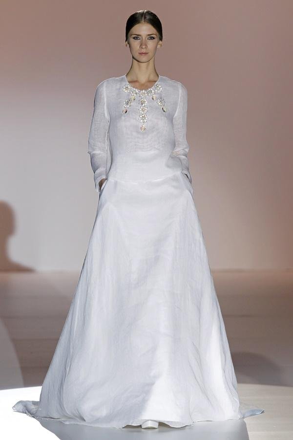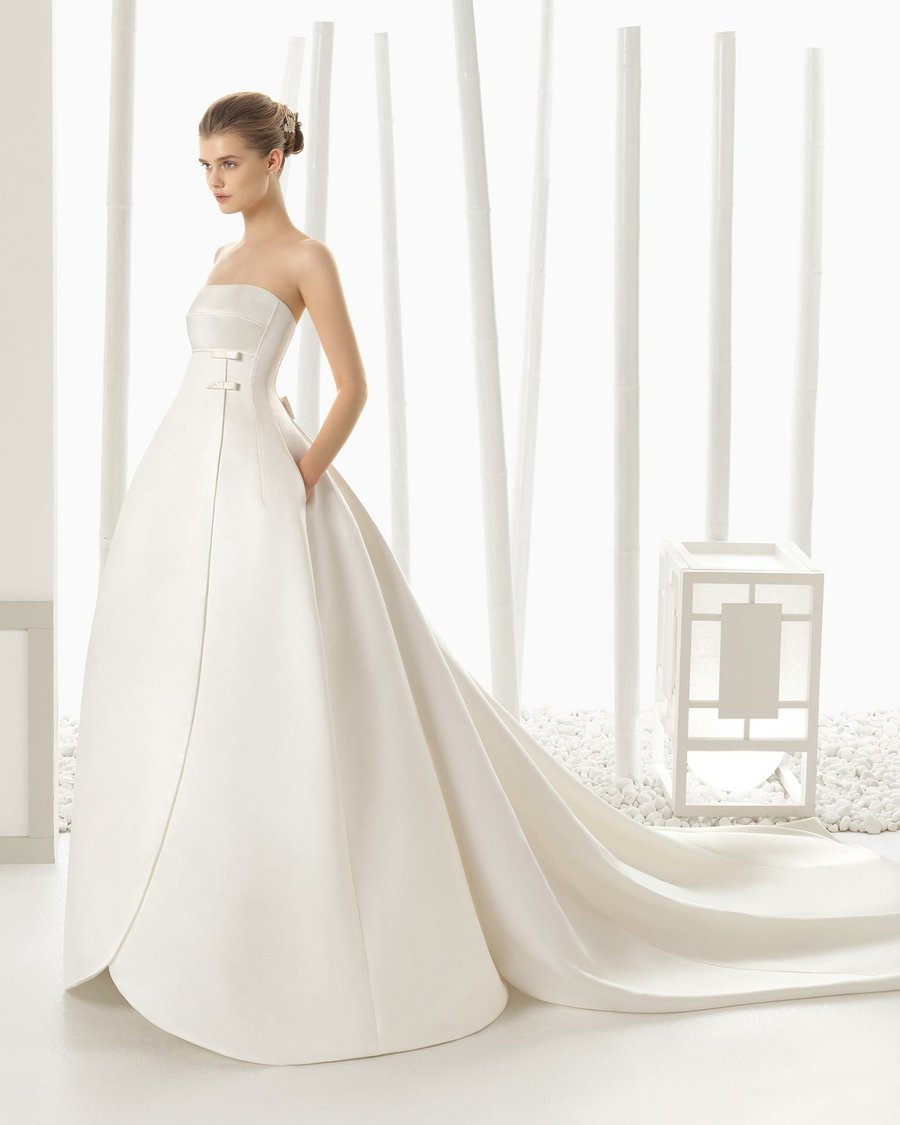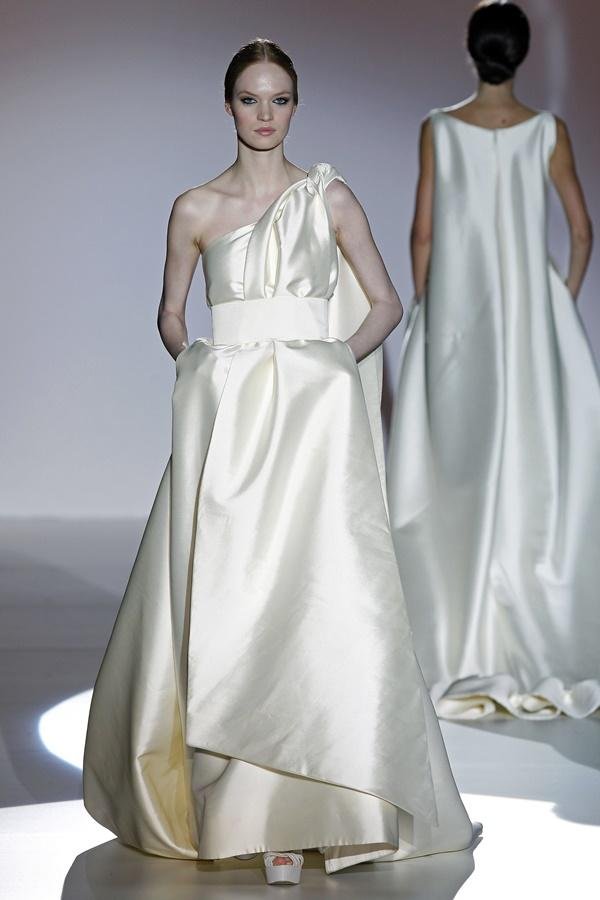 Reconocidas firmas españolas, como Rosa Clará o Pronovias, no tardaron en incluir los bolsillos en sus diseños. Los hemos visto en temporadas anteriores, pero esta vez con mayor protagonismo. Tanto en voluptuosas faldas de corte A como en líneas más rectas, los bolsillos se adaptan.