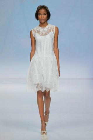 Vamos a ver de nuevo en los vestidos de novia cortos una de las tendencias estrella, como es el efecto tatuaje y también las telas bordadas y el efecto 3D. Fíjate en el vestido de Alicia Rueda, en el que la tela toma todo el protagonismo, o en las propuestas de Inmaculada García.
